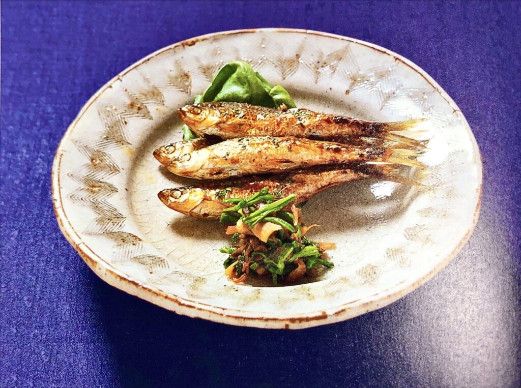 ■焼肴「子持ちモロコの木の芽焼きと芹